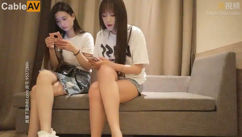 约了两个妹子留下牛仔裙妹子,沙发调情一番穿上透视装,口交摸逼上位骑乘抽插
